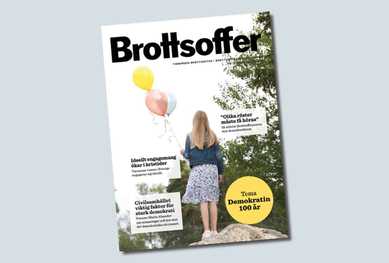 I nr 3/2021 möter du också Brottsofferjouren i Mellersta Skåne som ställt om i pandemitider och engagerar många ideella trots distans. Dessutom berättar Brottsofferjouren Sveriges Cornelia Johansson om hur demokratibrott kan förebyggas och hur de som drabbas kan stöttas.